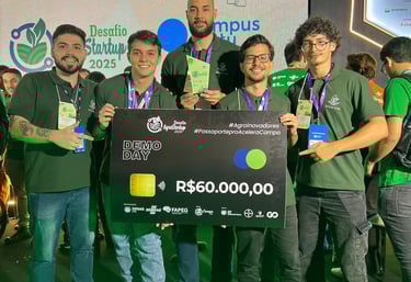Vencedores da maior vitrine de agtechs, com aporte de R$ 60.000,00 para aceleração e desenvolvimento tecnológico.